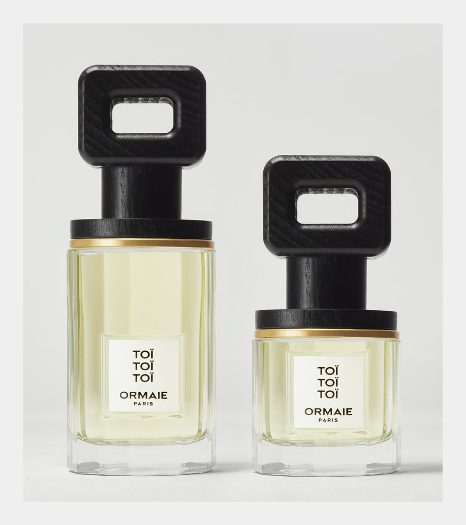 A bottle and cap borrowed from the original Eau de Parfum. A redesigned label and box with gold stamping, featuring brutalist writing that echoes the high concentration of the Extrait de Parfum.